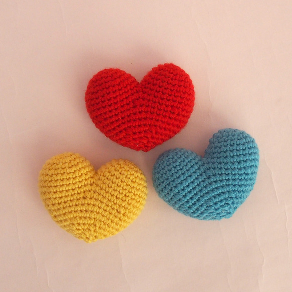 毛糸を編んで作る、ハートのあみぐるみ。とってもきれいな形カラフルできれいな色とぷっくり感がとってもかわいいハートのあみぐるみができました♪写真撮影の背景にそっと...
