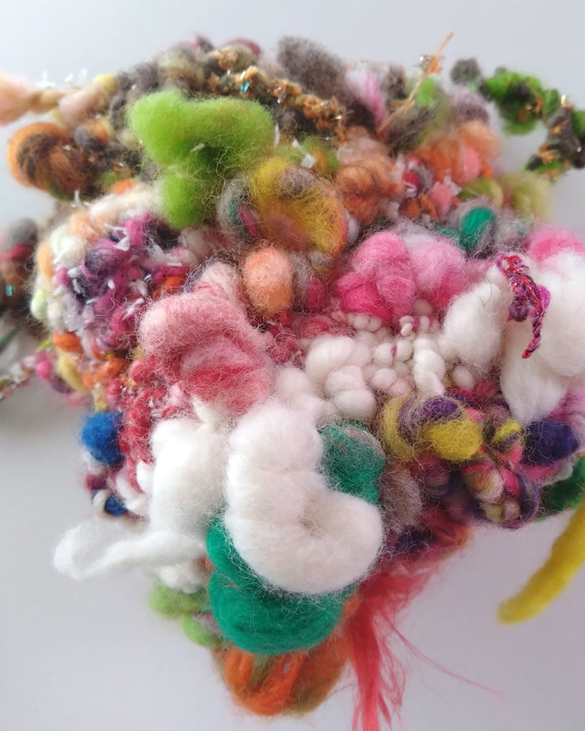 初めて作った自分の糸を、満を持して編んでみることに!